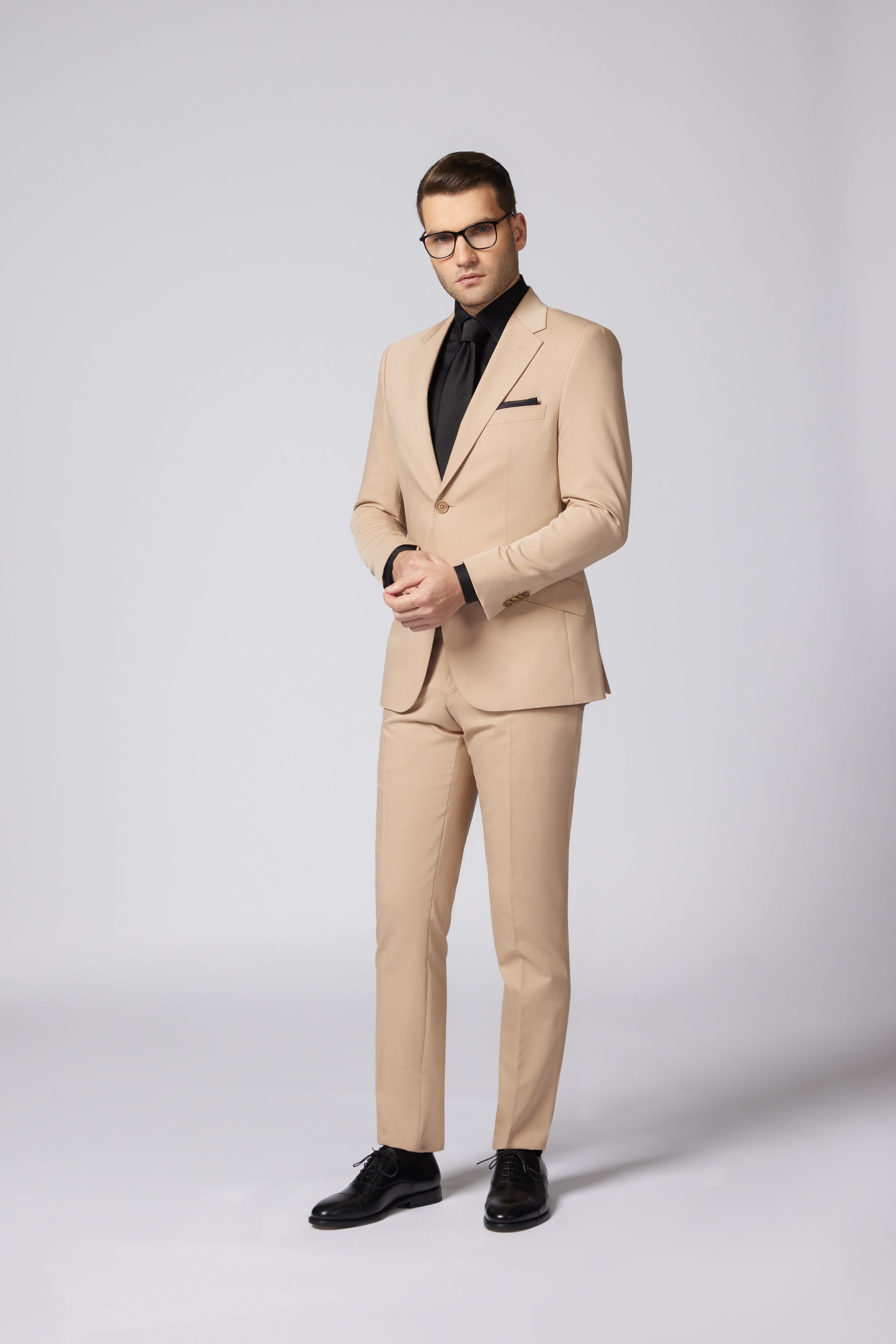 Costumul pentru bărbați cu numele Dominic în culoarea crem este o alegere elegantă și rafinată pentru o ținută casual sofisticată. Cu un rever clasic și nasturi crem, acest costum single breasted este perfect pentru o varietate de ocazii, de la întâlniri de afaceri la evenimente sociale relaxate. Croiala acestui costum este concepută pentru a se potrivi bine pe corp, evidențiind silueta masculină într-un mod subtil și elegant.