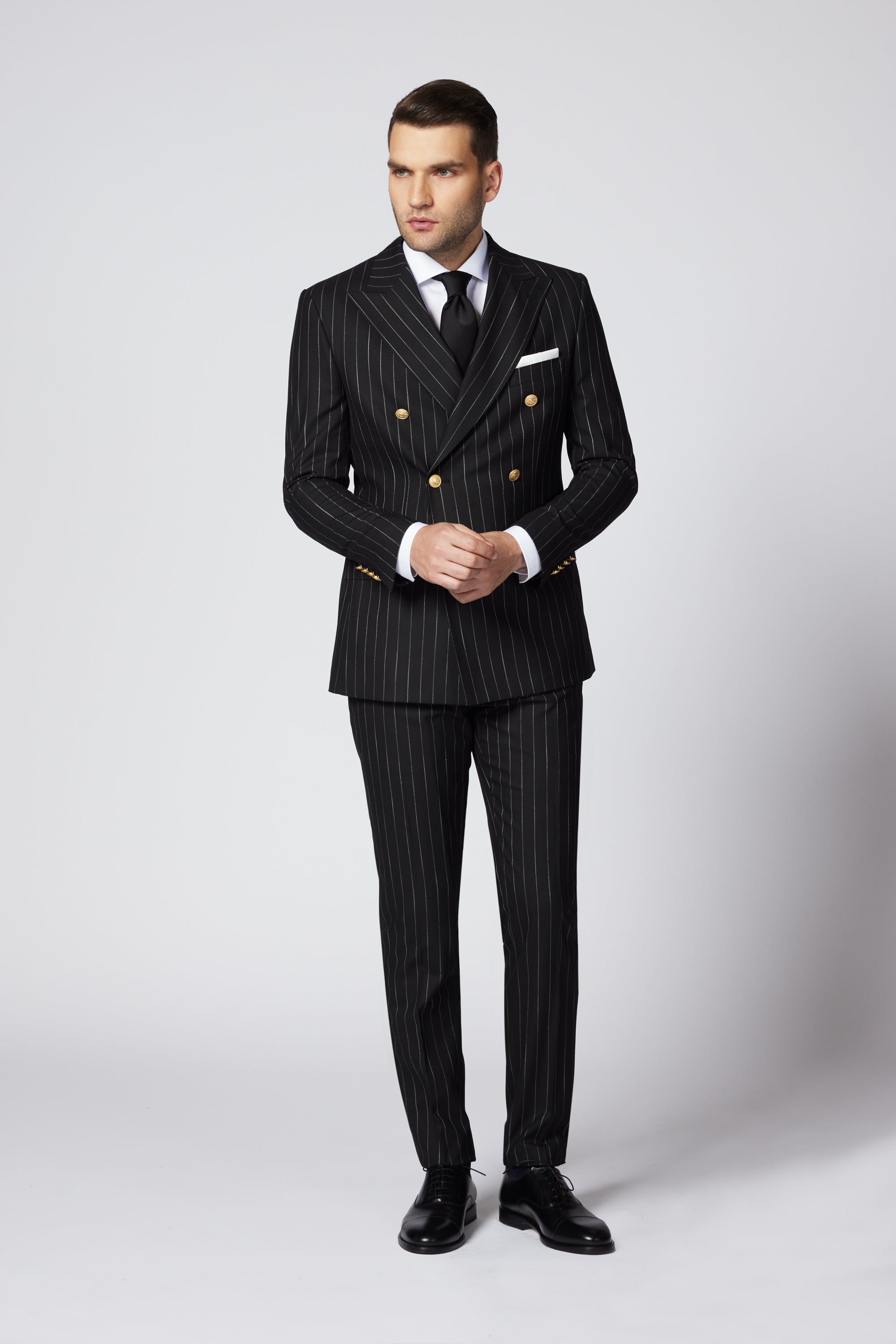 Costumul Frederick este o alegere sofisticată și elegantă pentru orice ocazie casual sau semi-formală. Cu o nuanță elegantă de negru, acest costum este accentuat de dungi subtile albe, care îi conferă o notă distinctivă și rafinată.