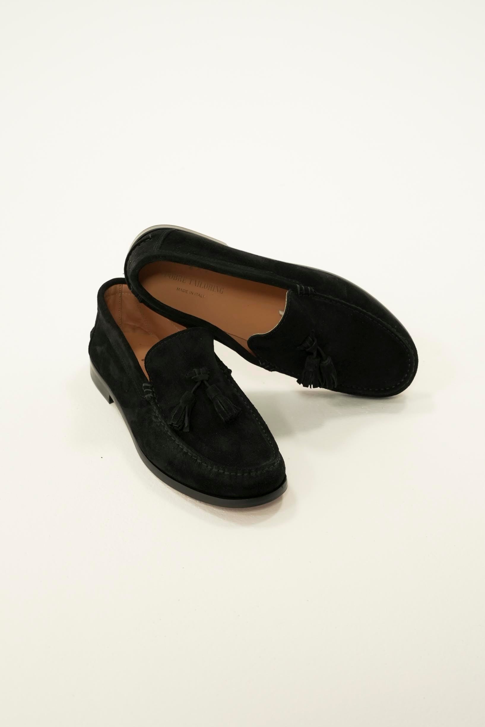 Pentru o ținută casual sau în cadrul unui eveniment mai relaxat de seară, un bărbat modern poate opta pentru o variantă mai creativă a pantofilor casual și anume acești Tassel Loafers negri suede – piele întoarsă de vițel cu talpă înaltă.